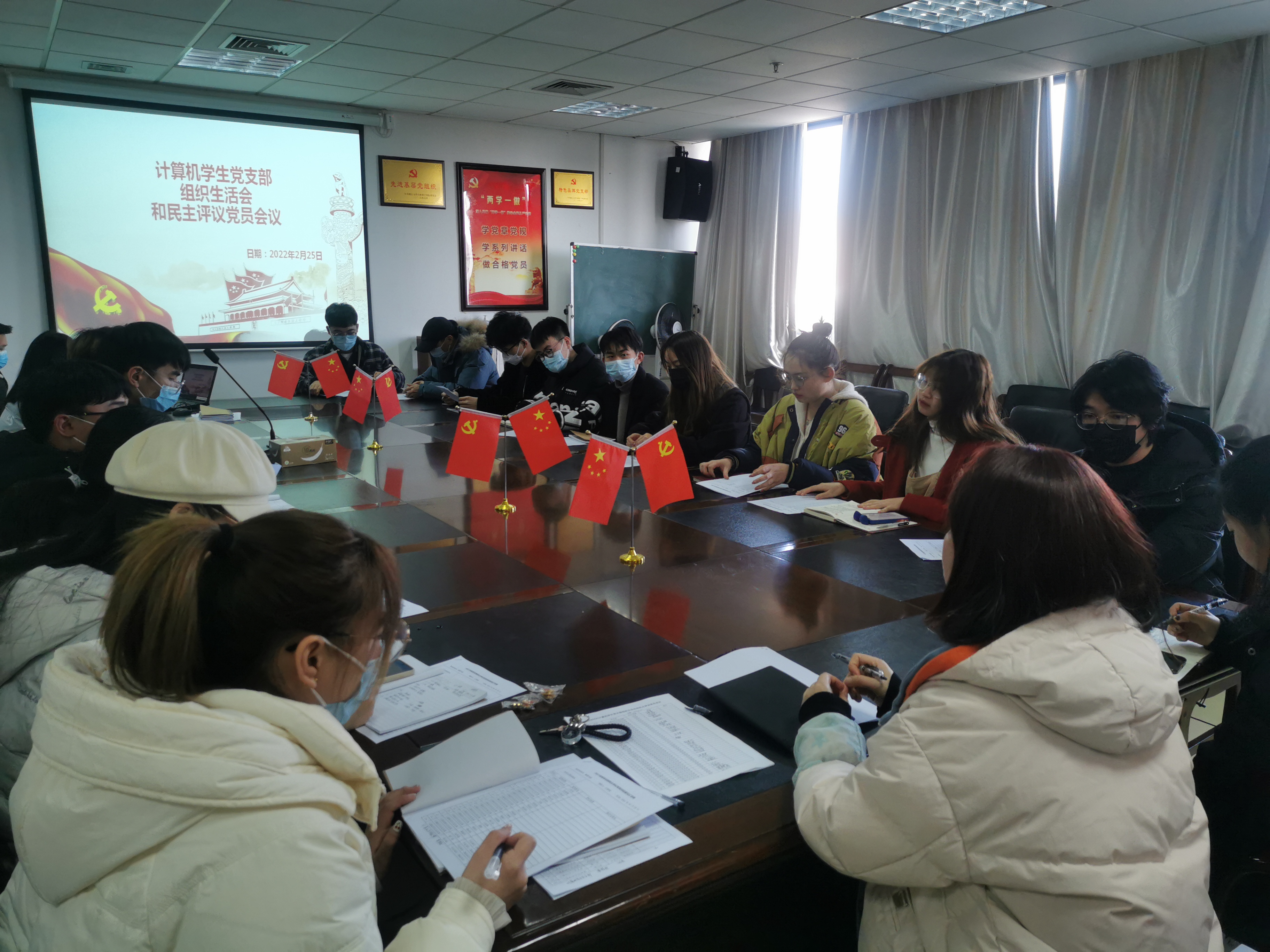 2022年2月25日下午3点,计算机与数据工程学院计算机学生党支部在石麟602党员之家开展了2021年度计算机学生党支部组织生活会和民主评议党员会议,本次大会由计算机学生党支部书记王常青老师主持,全体支部党员参加。