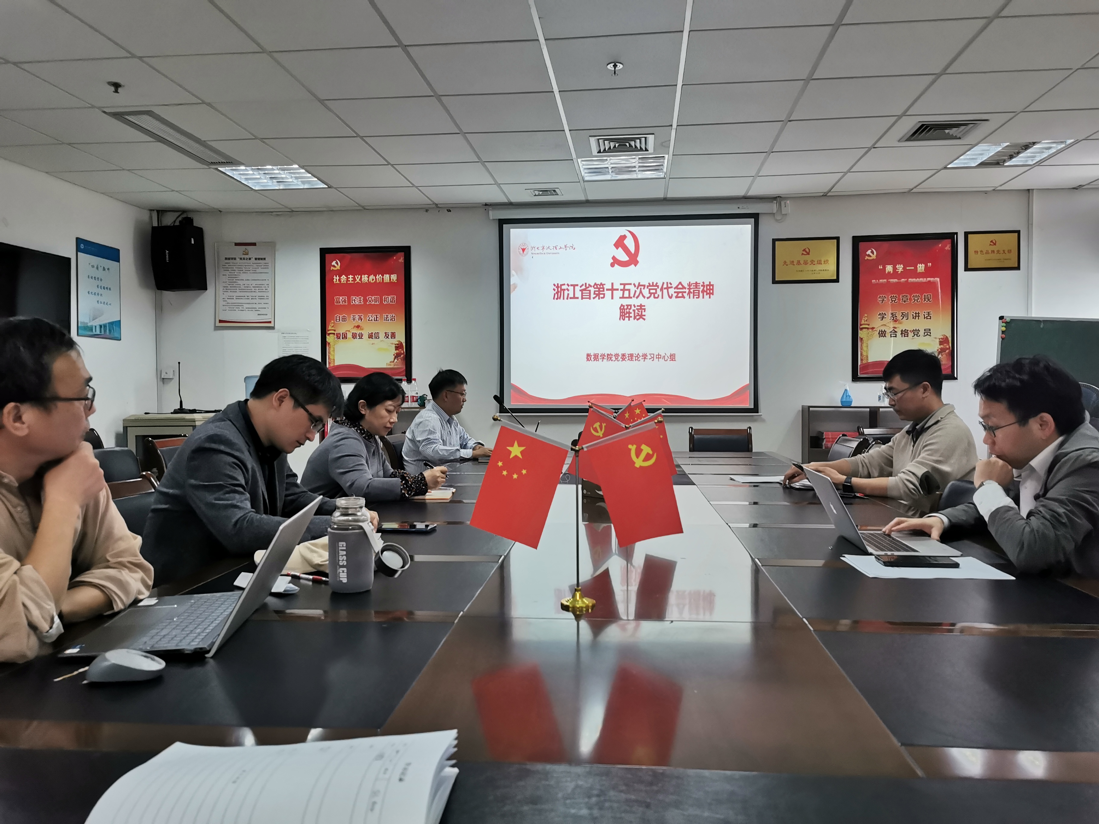 为深入学习贯彻落实浙江省十五次党代会精神,引导党员干部切实把思想和行动统一到党代会精神上来,学院党委组织召开浙江省第十五次党代会精神宣讲专题党课。学院党政领导班子、党委班子及党员代表等参加。