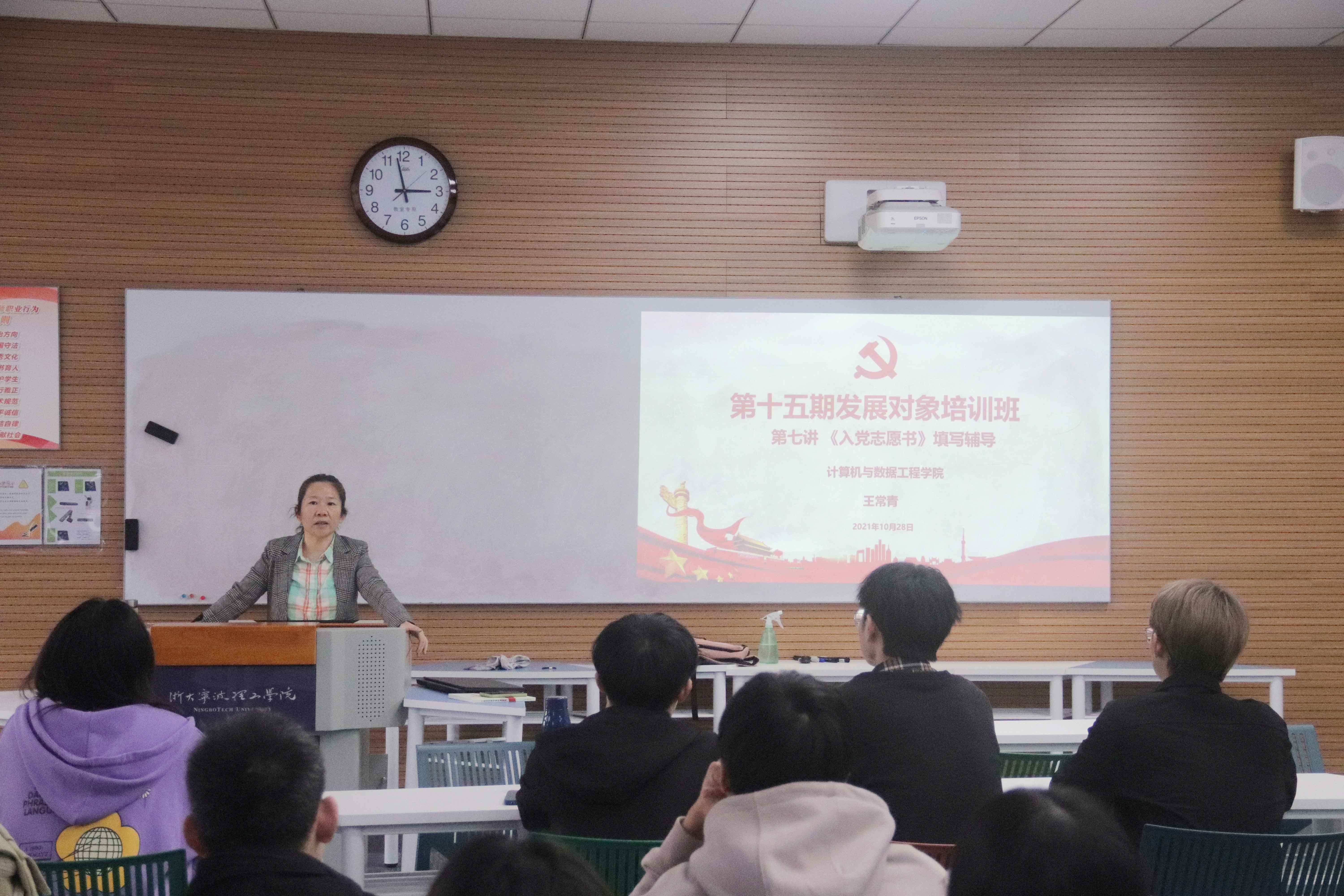 10月28日下午,数据学院在NB109开展了第十五期发展对象培训班第七讲课程——《入党志愿书》填写辅导,由计算机学生党支部书记王常青老师授课。