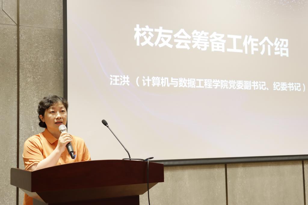 汪洪副书记回顾学院校友工作的重要时刻,并介绍了数据校友分会的前期筹备工作。随后,会议审议并表决通过了分会章程、理事名单及会长、副会长名单等材料。
