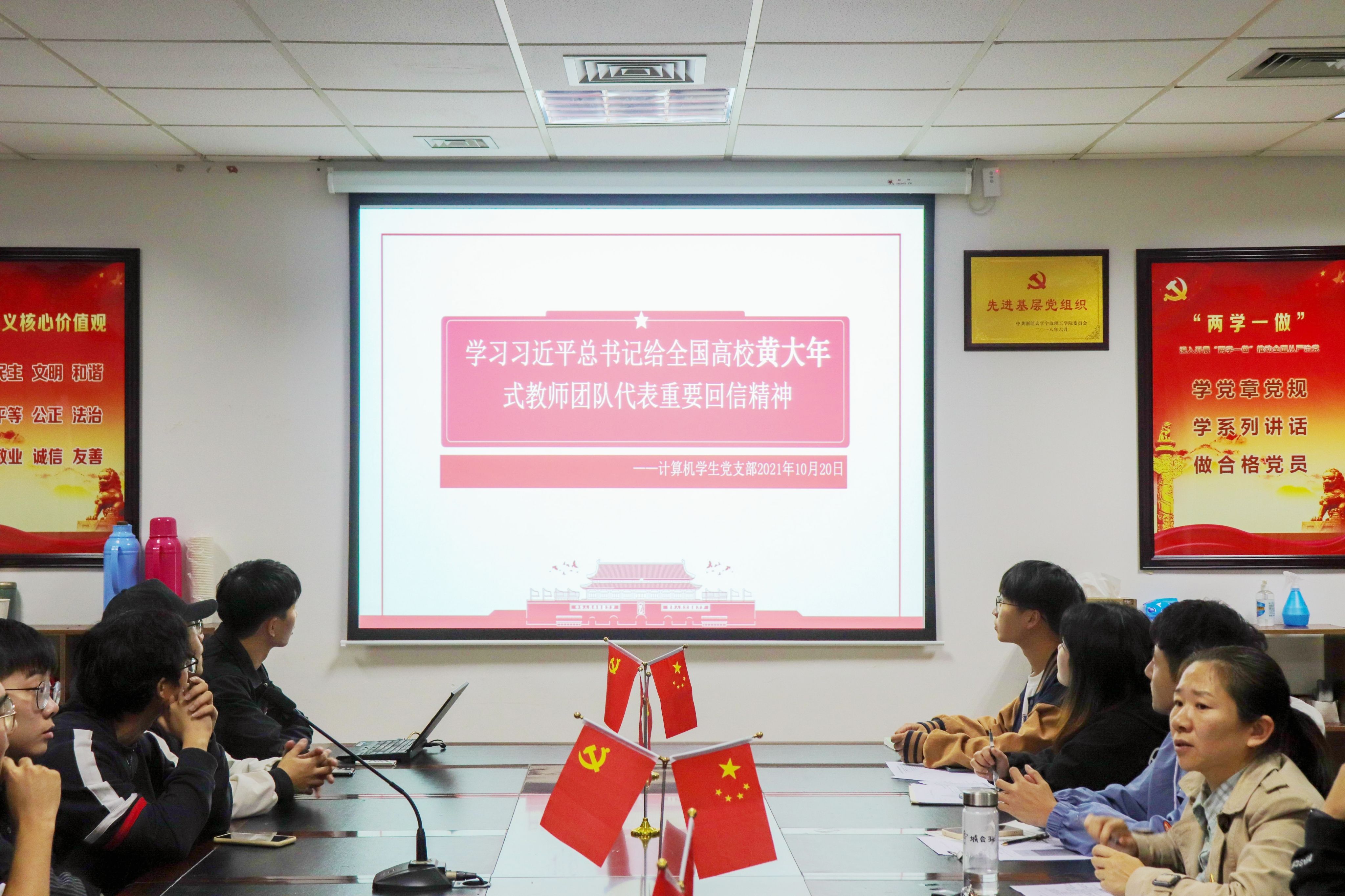 为了加深各位党员对于习近平总书记给全国高校黄大年式教师团队代表重要回信精神的认识,10月20日晚八点半,数据学院计算机学生党支部在石麟大楼602会议室开展了学习关于习近平总书记重要回信精神的支部会议。该会议在党支部书记王常青主持下展开。