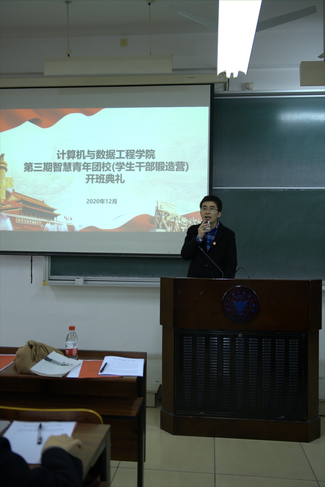 典礼在恢宏的团歌中拉开帷幕。马炜栋老师表示,学院团委将从理论学习、实践交流和提升总结等三个方面来锤炼学生干部能力素质。他讲解了《数据学院第三期学生骨干培训班学院管理与考核办法》,重点强调课程体系和考勤办法,并希望学员们能严格要求自己,自觉遵守纪律。