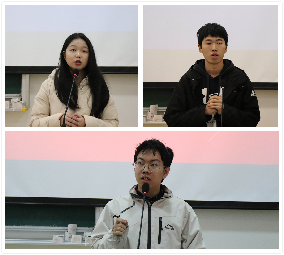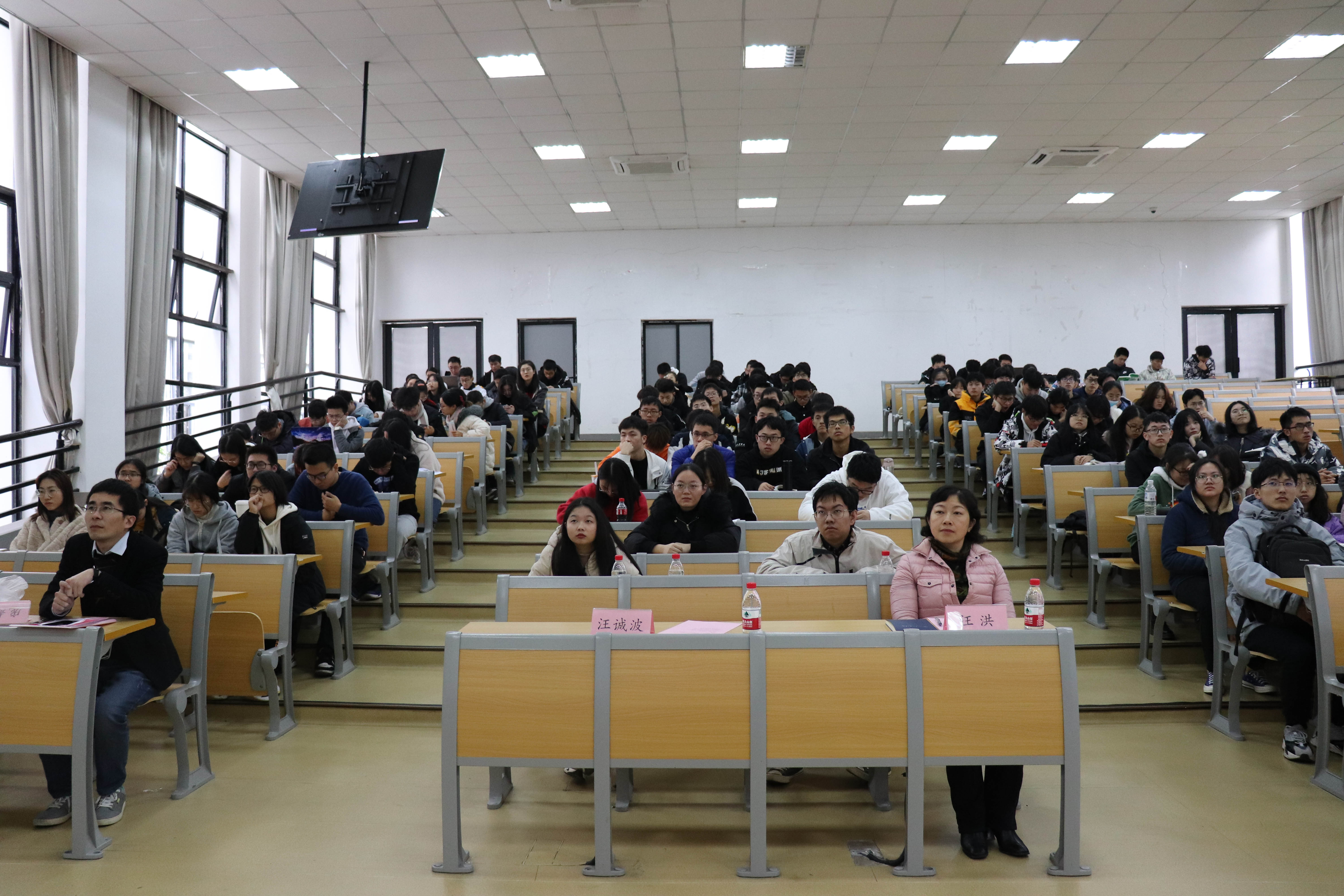 会议还安排了大数据181俞若晨、信计181施卓伸和计算机191张昊闻三名同学上台。他们分别就大学生科研创新项目、数学建模竞赛和程序设计大赛做了介绍,并分享了经验体会。