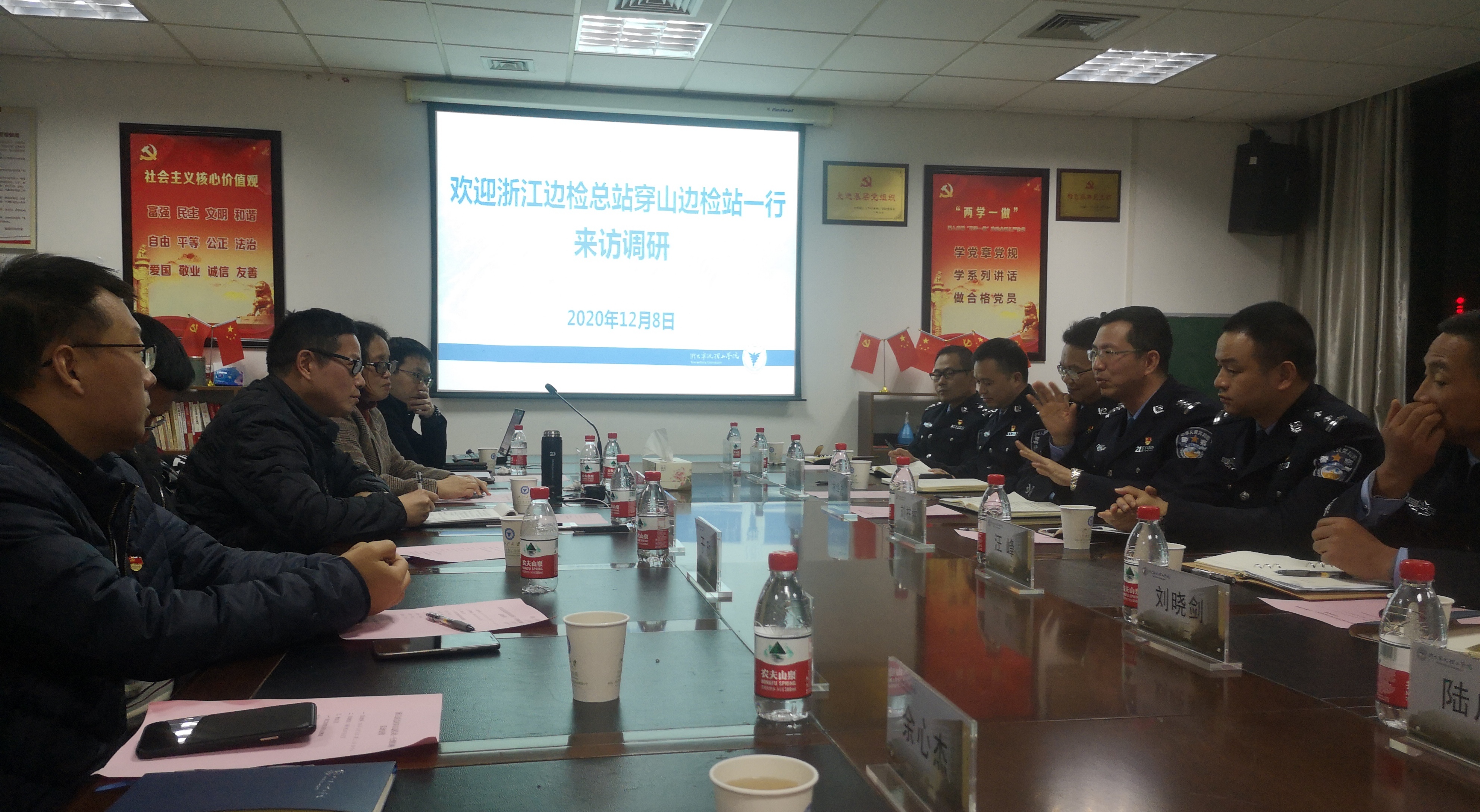 2020年12月8日下午,浙江边检总站穿山边检站站长林华志、政委刘栋栋等一行8人莅临浙大宁波理工学院调研交流工作,这是继上次我校赴宁波穿山边检站调研考察的回访。学校副校长鲁东明、浙江大学软件学院副院长陈丽,计算机与数据工程学院领导班子陪同调研。