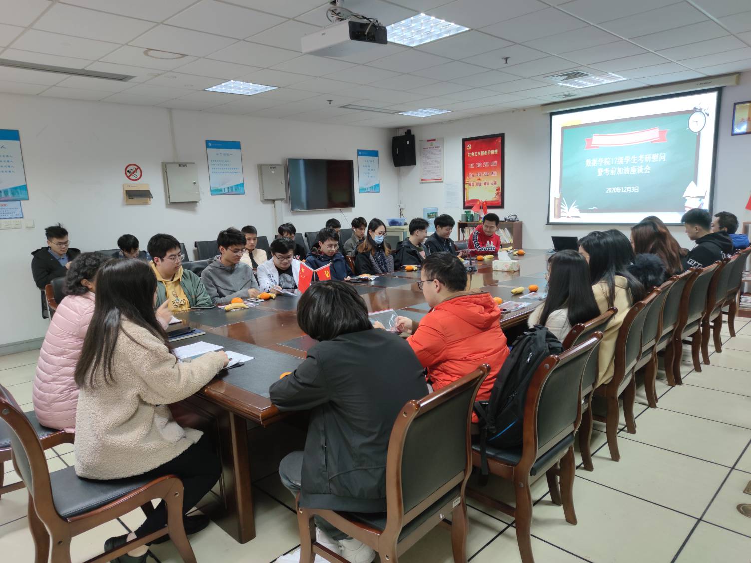 在考研倒计时一个月之际,为鼓励考研学子,缓解备考压力,12月3日下午,数据学院开展了2017级考研学生慰问会暨考前加油座谈会,为同学们送上“考研福袋”、加油助力。