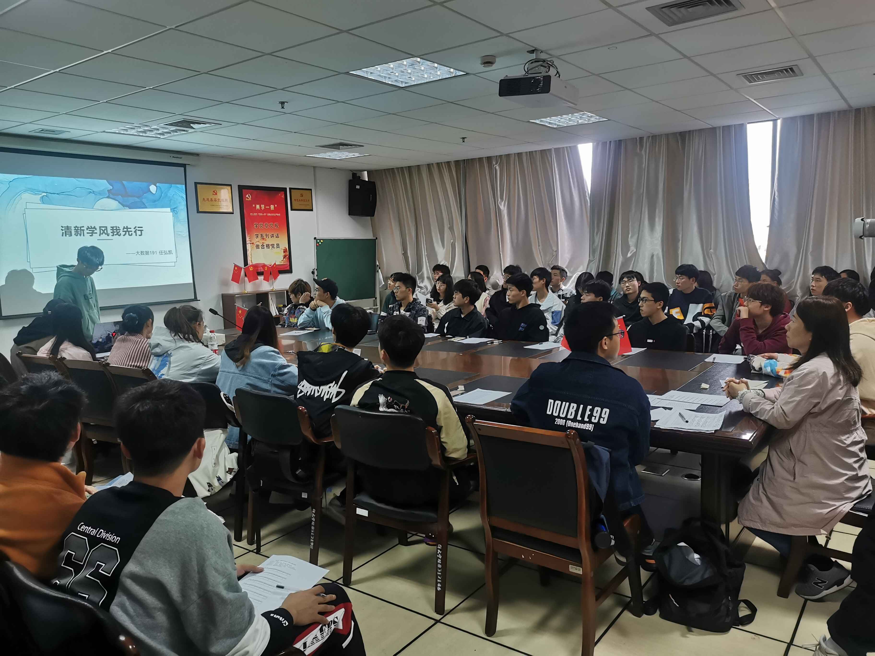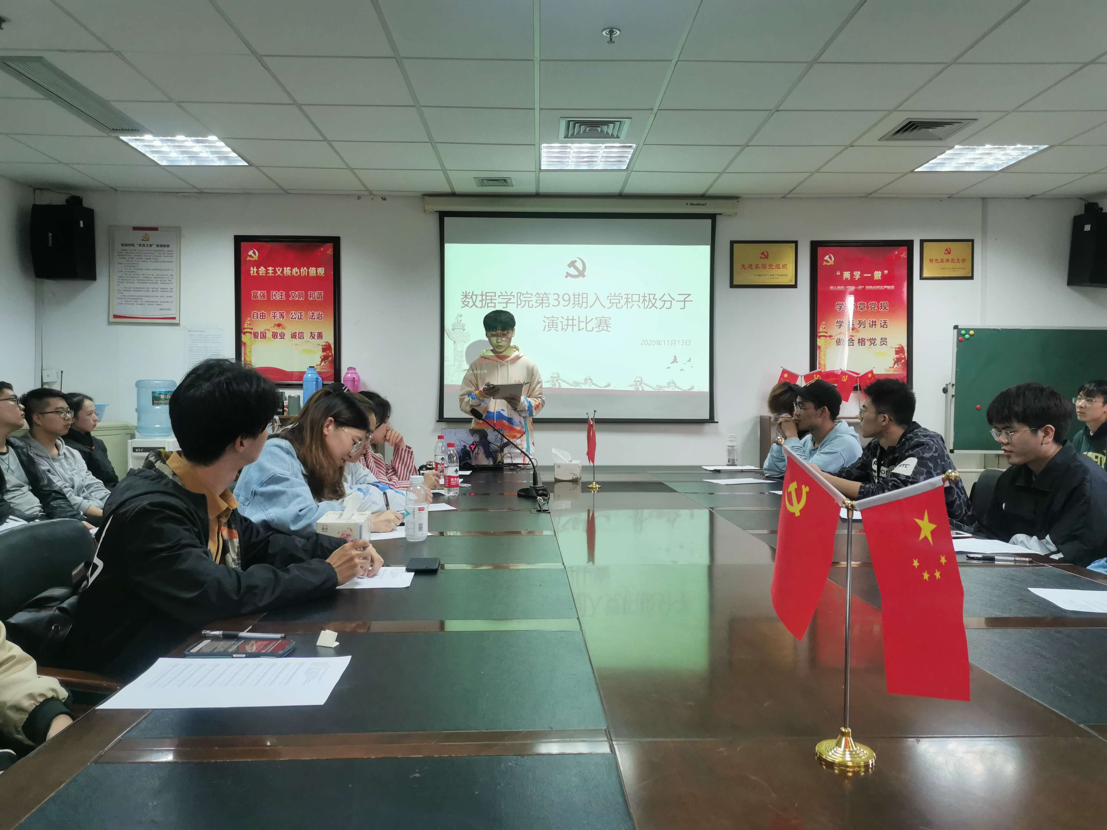数据学院于11月13日在石麟602党员之家举行入党积极分子演讲比赛,本次演讲比赛的主题为“清新学风我先行”,由学院党务助理汪炼晋同学主持,第39期入党积极分子培训班全体学员参加。