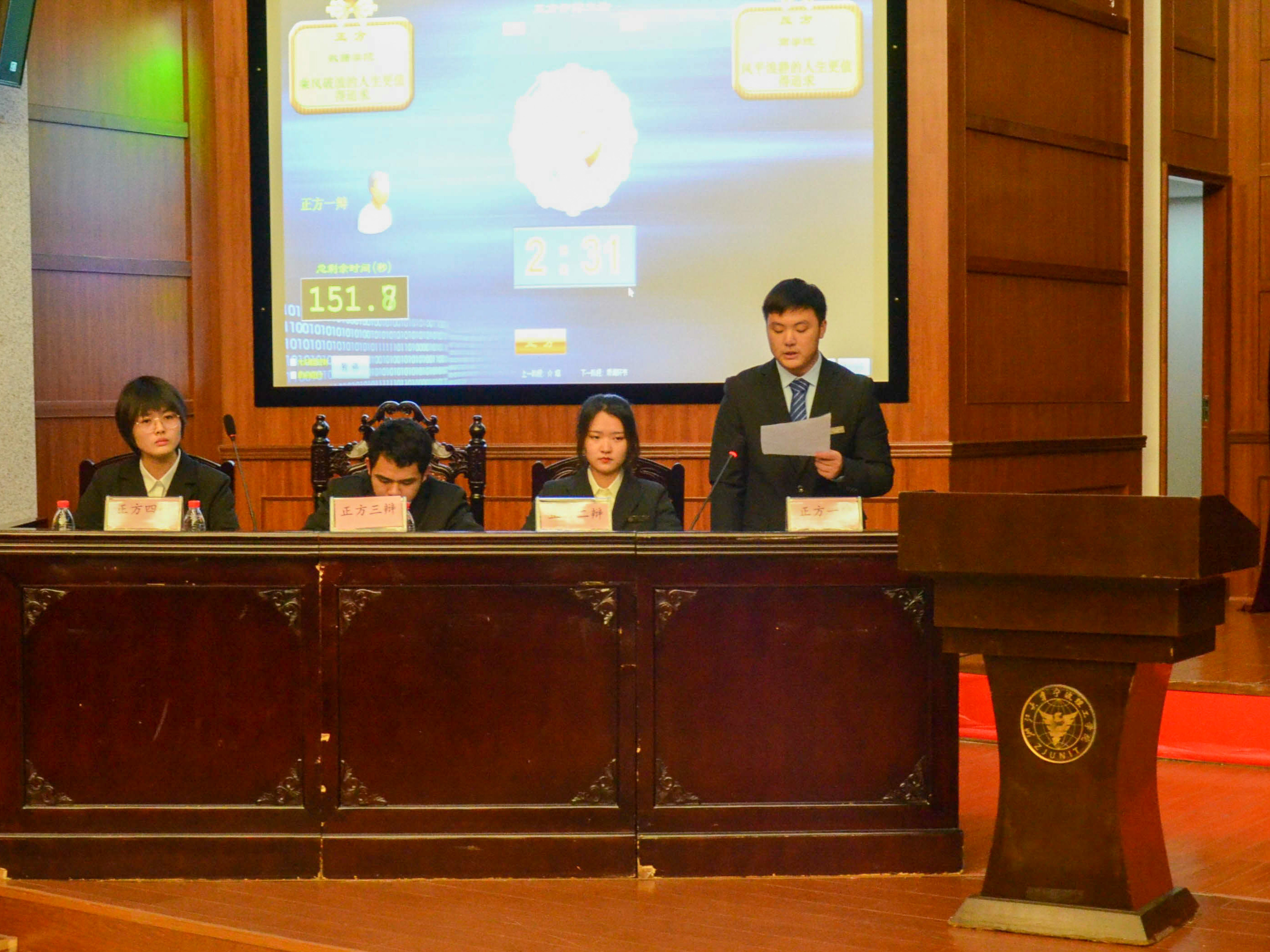 本次比赛,数据学院派出了大数据201班刘锦通、大数据201班吴美瑶、大数据202班姚家豪、计算机205班李英四位同学。在主持人简单介绍后,比赛立即开始。正反双方围绕“乘风破浪/风平浪静的人生更值得追求”这一辩题进行立论阐述。为响应政府防疫号召,现场未设观众席,但选手们依旧热情不减,出色地完成了此次比赛。最终,数据学院以3.5:1.5的巨大优势击败商学院, 2020年“启新杯”辩论赛成功卫冕,正方二辩吴美瑶同学获得“最佳辩手”称号。
