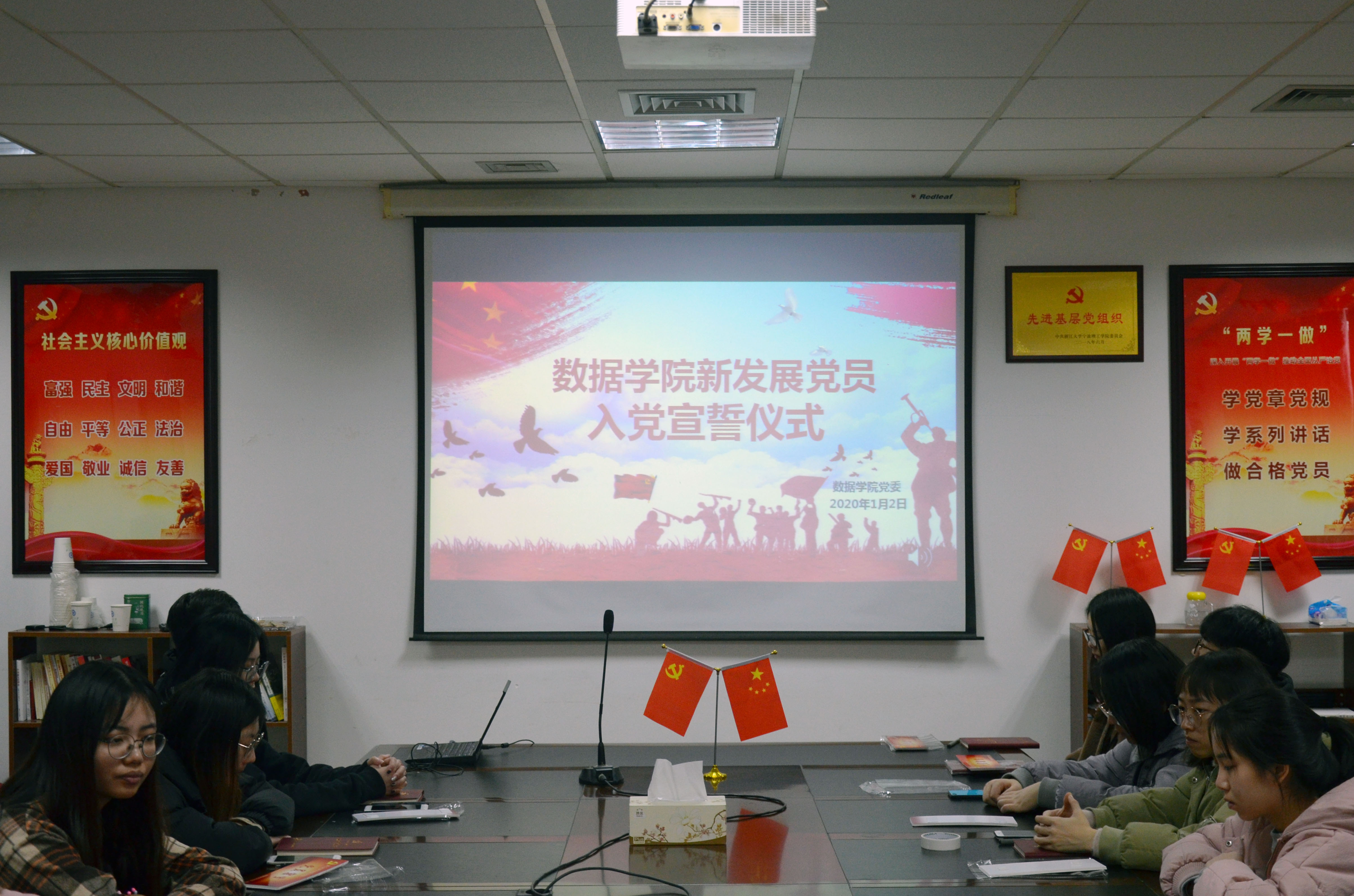 1月2日下午,数据学院在石麟602党员之家举行新发展党员入党宣誓仪式,学院党委副书记、纪委书记汪洪老师出席本次仪式,学院学生党支部书记以及2019年下半年全体新发展党员参加,仪式由王常青老师主持。