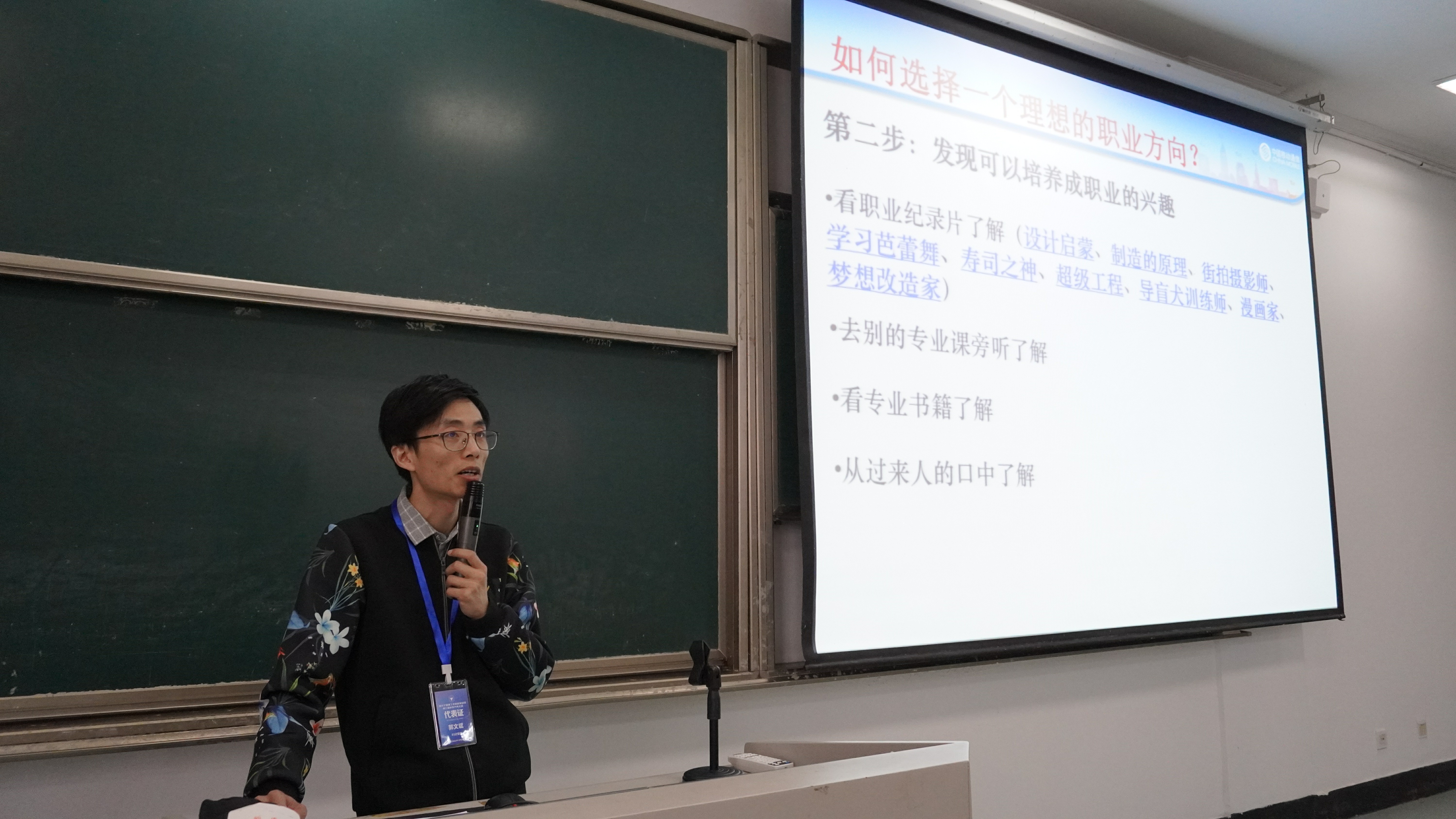 讲座开始,汪洪老师介绍举办此次活动的目的,并向同学们介绍了五位校友。五位学长则以各自的主题进行宣讲,分享自己的成长故事、工作心得,给学弟学妹指点迷津,传递正能量。
