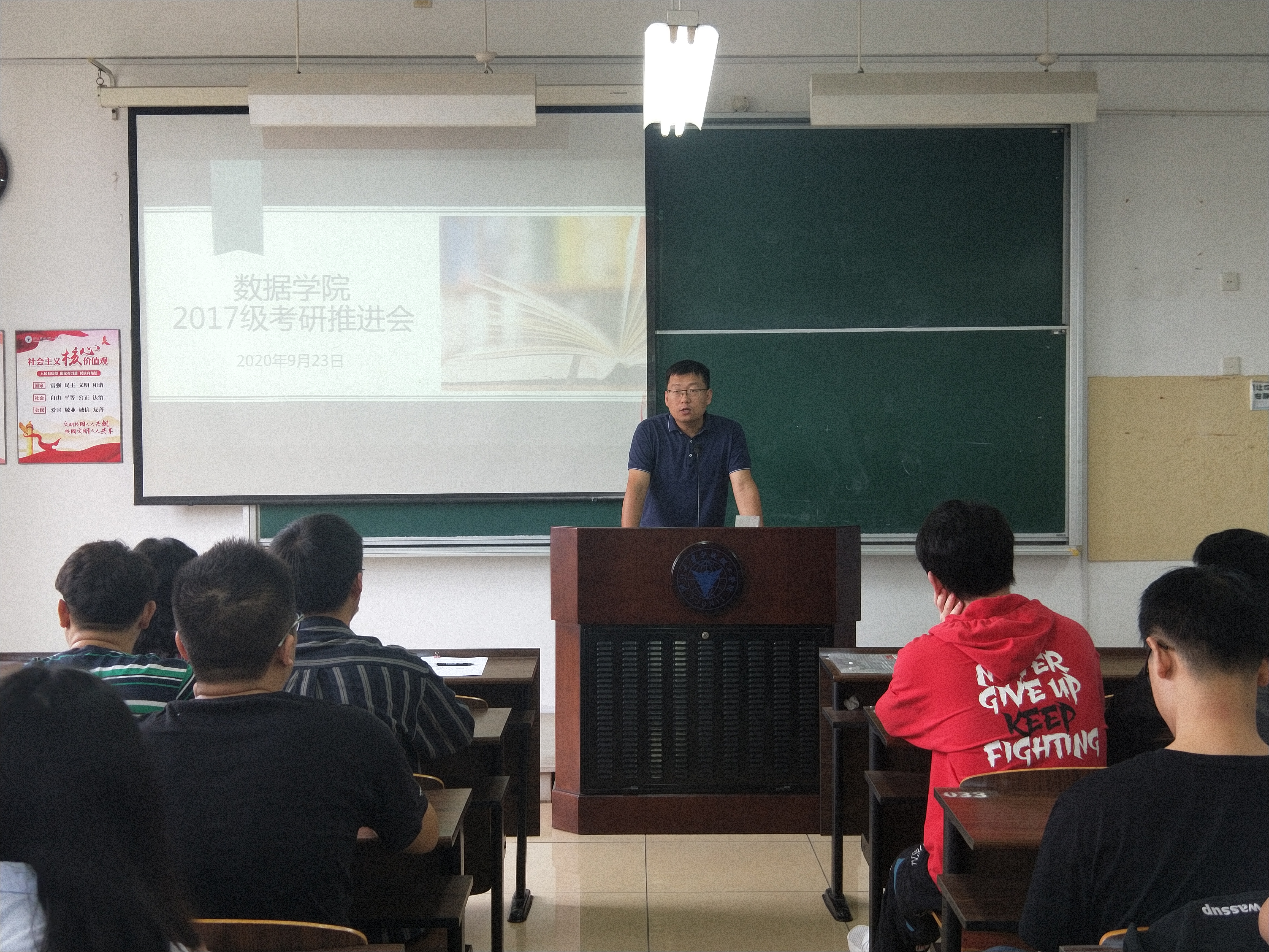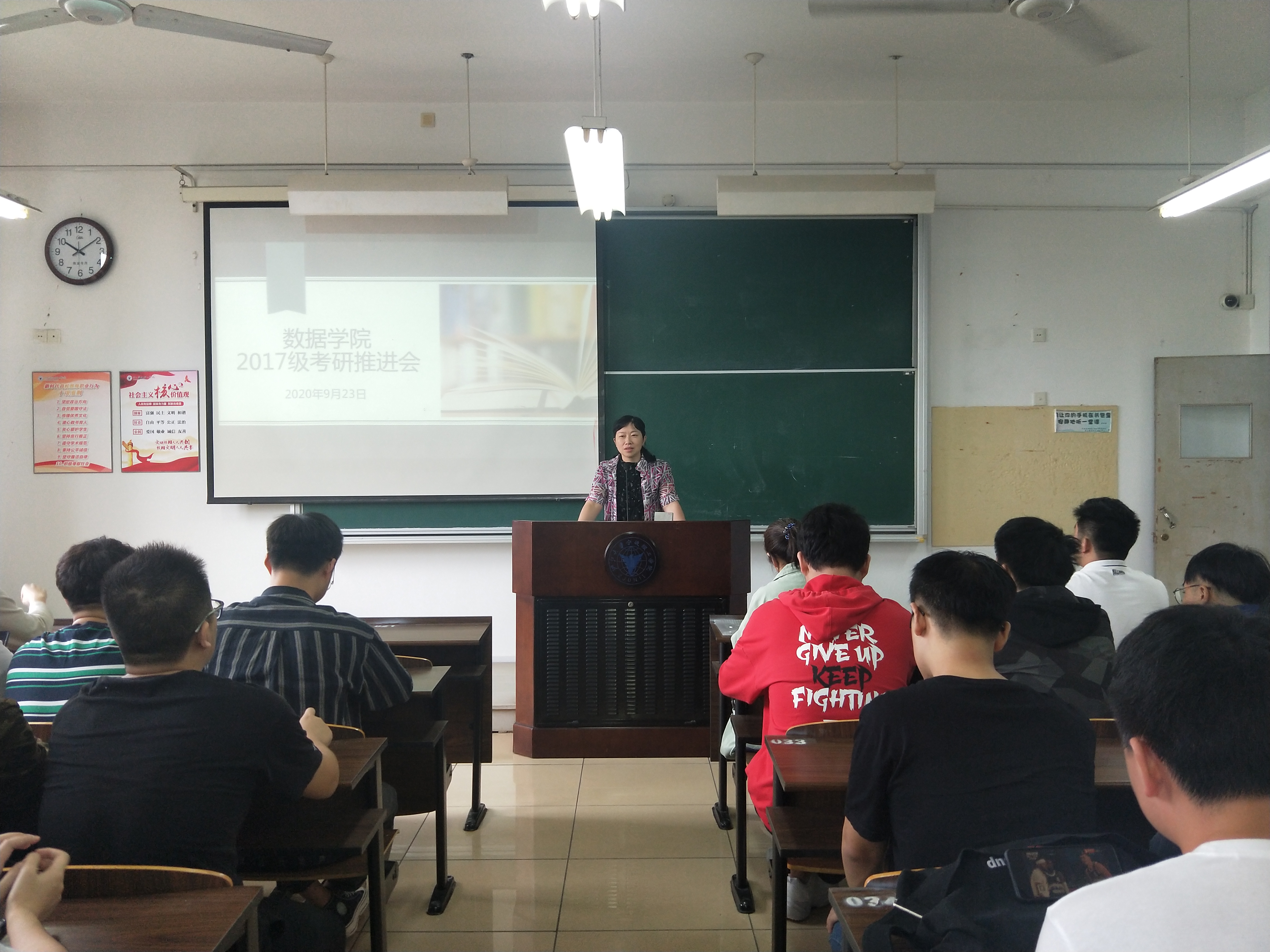 为进一步了解学生考研情况,提升学院考研率,数据学院9月23日在NB430召开考研学生座谈会,学院党委书记于欣、党委副书记汪洪出席会议,学工办老师、考研辅导机构人员、2017级考研学生参加,会议由学院思政主管王常青主持。