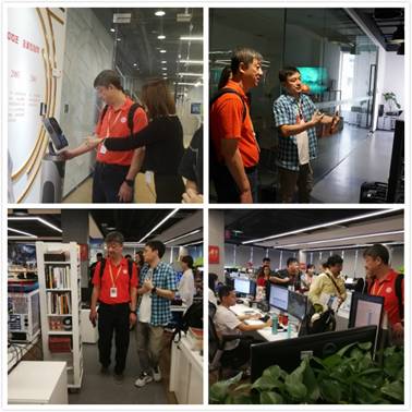 座谈会后,胡书记一行在校友陈杰总监的陪同下参观了金山公司,并看望了工作岗位上的校友们。