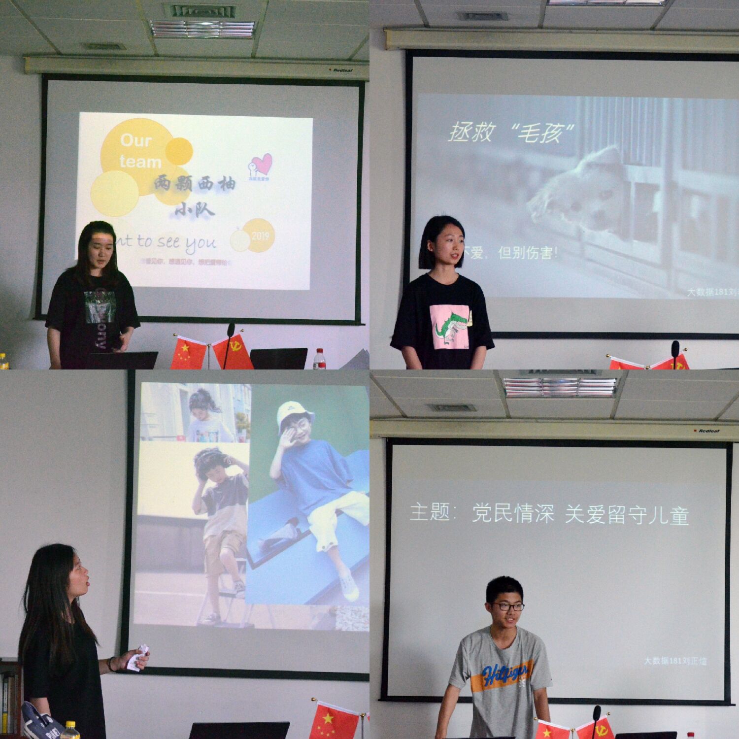 答辩开始,首先由各个小组的代表依次对各自的社会实践活动方案进行叙述,内容包括了活动方案想法的来源,活动实施的具体措施以及组织该社会实践活动的意义与目的,并由老师进行点评和提问。在座老师结合每个活动方案,从其可行性、安全问题以及创新性等方面都给出了自己的看法。其中,李晓老师夸赞了“镜头背后,挖掘童模的内心”这一实践活动的新颖性,并提出一些建议,希望能够找到真实的案例,避免网上的道听途说。马炜栋老师对“研究当今医患矛盾”的方案提出了自己的看法,希望能够通过大数据分析这类符合数据学院特色的方式进行暑期社会实践。其他评委也就各项目的一些问题提出了意见和建议。