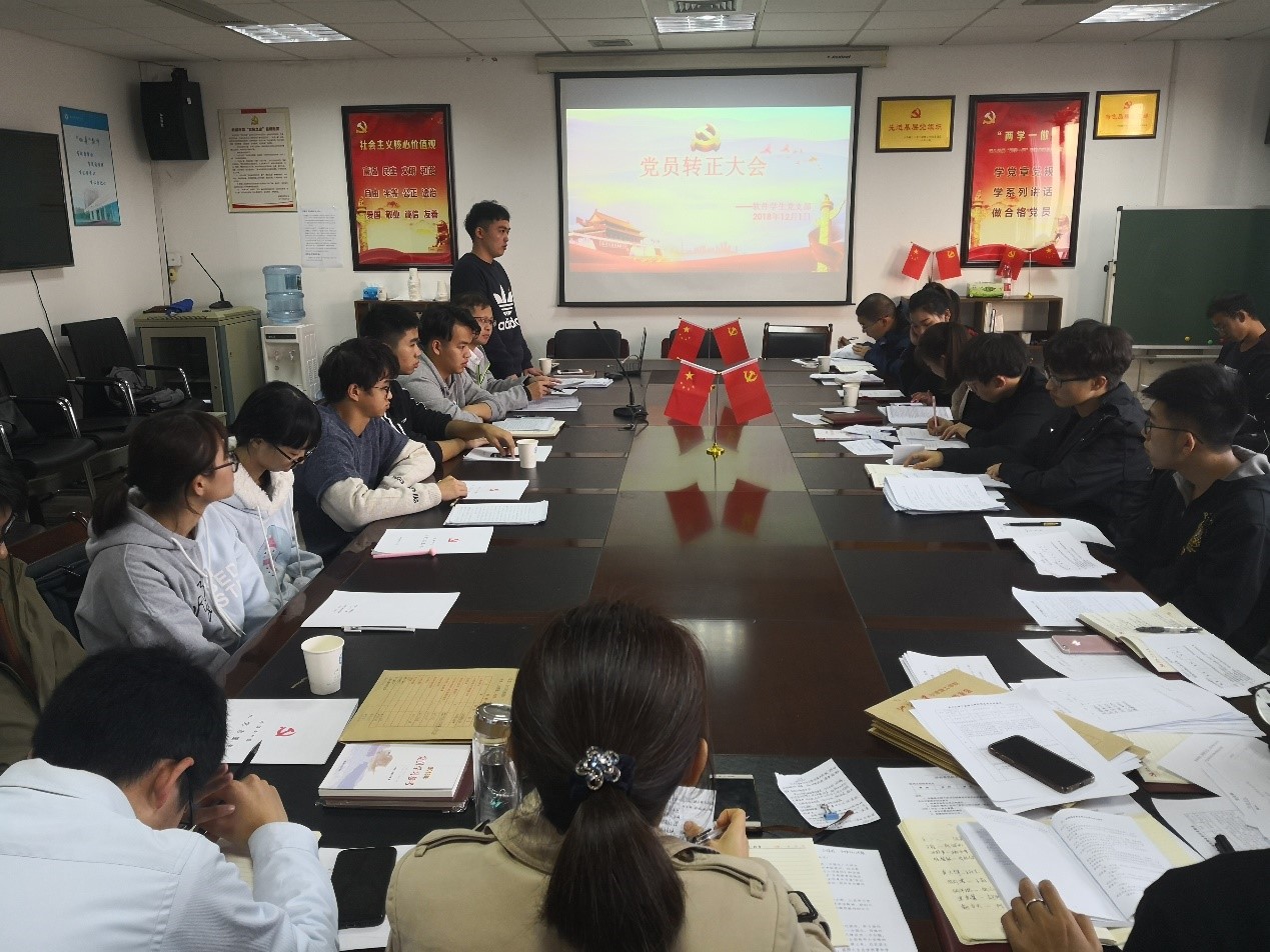 12月1日下午1点半,数据学院软件学生党支部在石麟602党员之家举行党员发展转正大会。会议由软件学生党支部书记王常青老师主持,软件学生党支部所有正式党员、预备党员和发展对象参加。