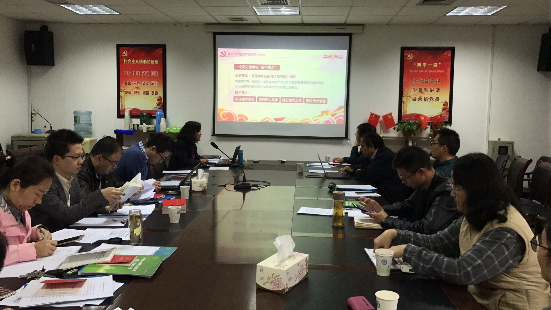 11月14日上午,数据学院党总支书记方国娟在学院党员之家讲授“学十九大精神,做合格党员”专题党课,学院党总支中心理论学习组成员、各支部书记参加了听课。