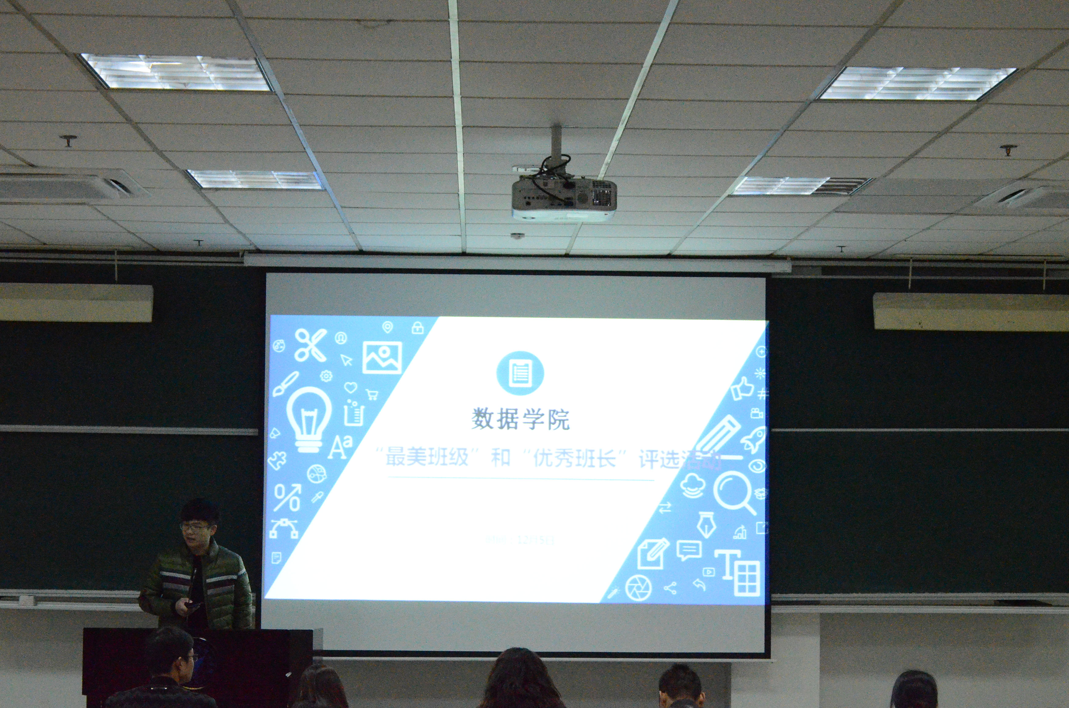 12月5日晚,数据学院在NF101举行了2016-2017学年 “最美班级”和“优秀班长”路演,各班级代表和班长分别对上一学年班级和个人的工作情况进行总结汇报。数据学院党总支书记方国娟等5位专家评委和45位学生评委根据现场展示情况为各班级和班长打分,最终评出10个最美班级和8位优秀班长。