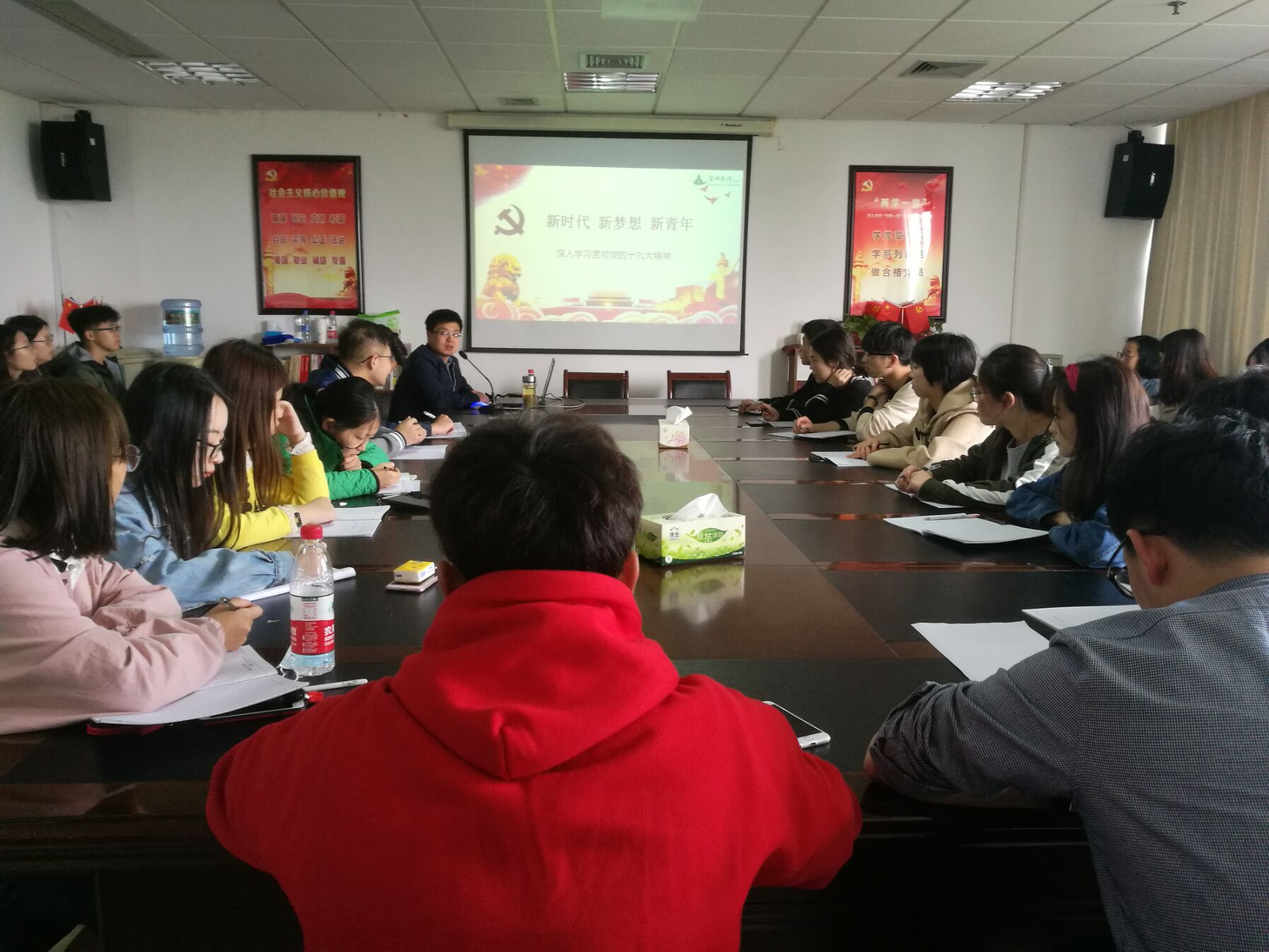 为进一步加强十九大精神的学习,数据学院党总支于4月15日14:00在石麟602党员之家举行了专题辅导报告,法政学院副书记伍醒老师做了题为“新时代、新梦想、新青年”的 报告,数据学院全体学生预备党员聆听了报告。