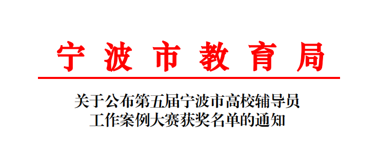 近日,第五届宁波市高校辅导员工作案例大赛传来捷报,我校选送的6个作品全部获奖,在数量与质量上皆获历史突破。其中,一等奖在全市8项中占3项,位列全市高校并列第一,另获二等奖2项,三等奖1项。