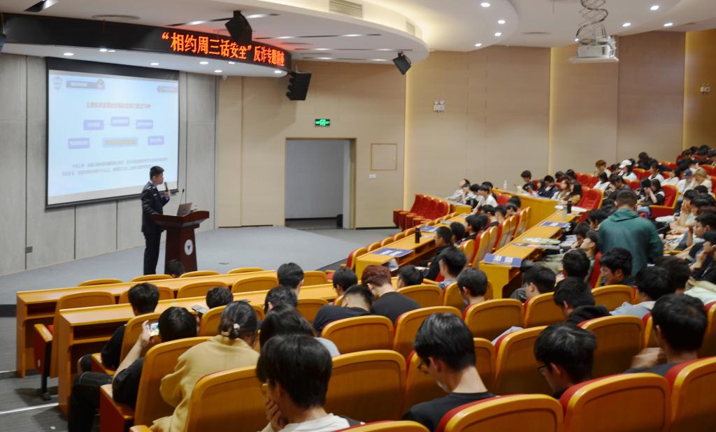 此次讲座活动以预防电信网络诈骗犯罪为主题,针对学生群体的特点,张警官从什么是电信诈骗、常见的电信网络诈骗套路、如何预防电信网络诈骗三个方面作了深入浅出的讲解。紧贴与校园息息相关的真实电信网络诈骗案例,采用PPT讲解、互动问答等方式对刷单返利类诈骗、冒充客服类诈骗、校园贷类诈骗和“两卡”类犯罪进行生动的案例分析和详实的数据呈现,对每类骗局背后的成因、心理进行深度剖析和精准宣讲。