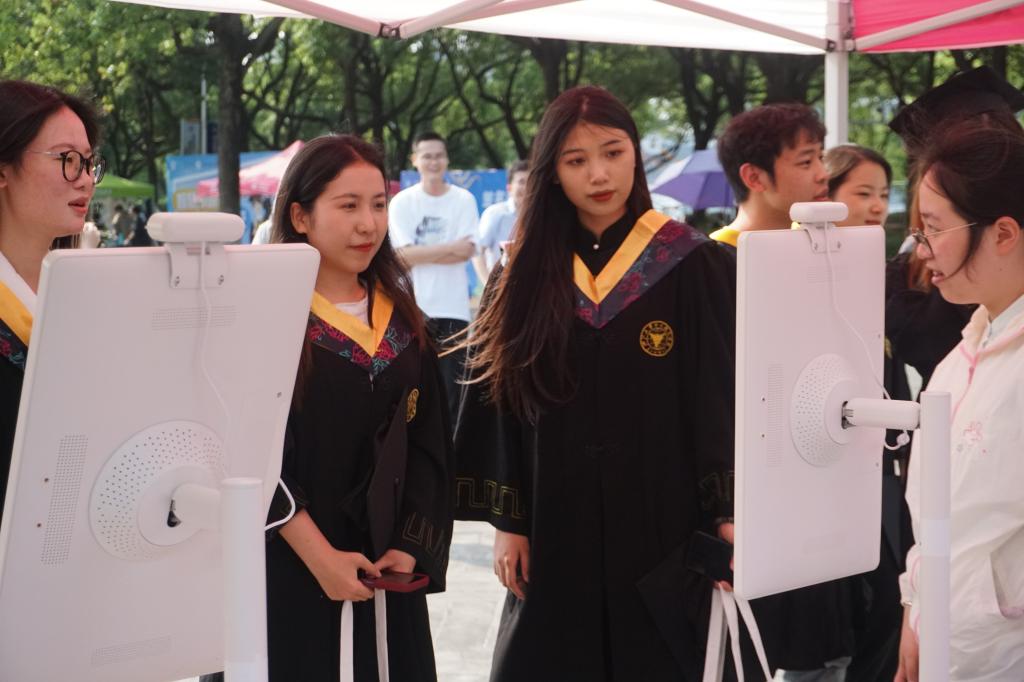 本次活动由数据学院主办,得到了校内外众多师生的积极响应。活动现场,同学们纷纷前来体验AI换装技术,通过简单的操作,便能根据自己的喜好选择不同的换装风格和背景场景,打造专属于自己的毕业回忆。同时,活动还设置了互动环节,大家可以互相分享自己的换装成果,增进彼此之间的友谊。