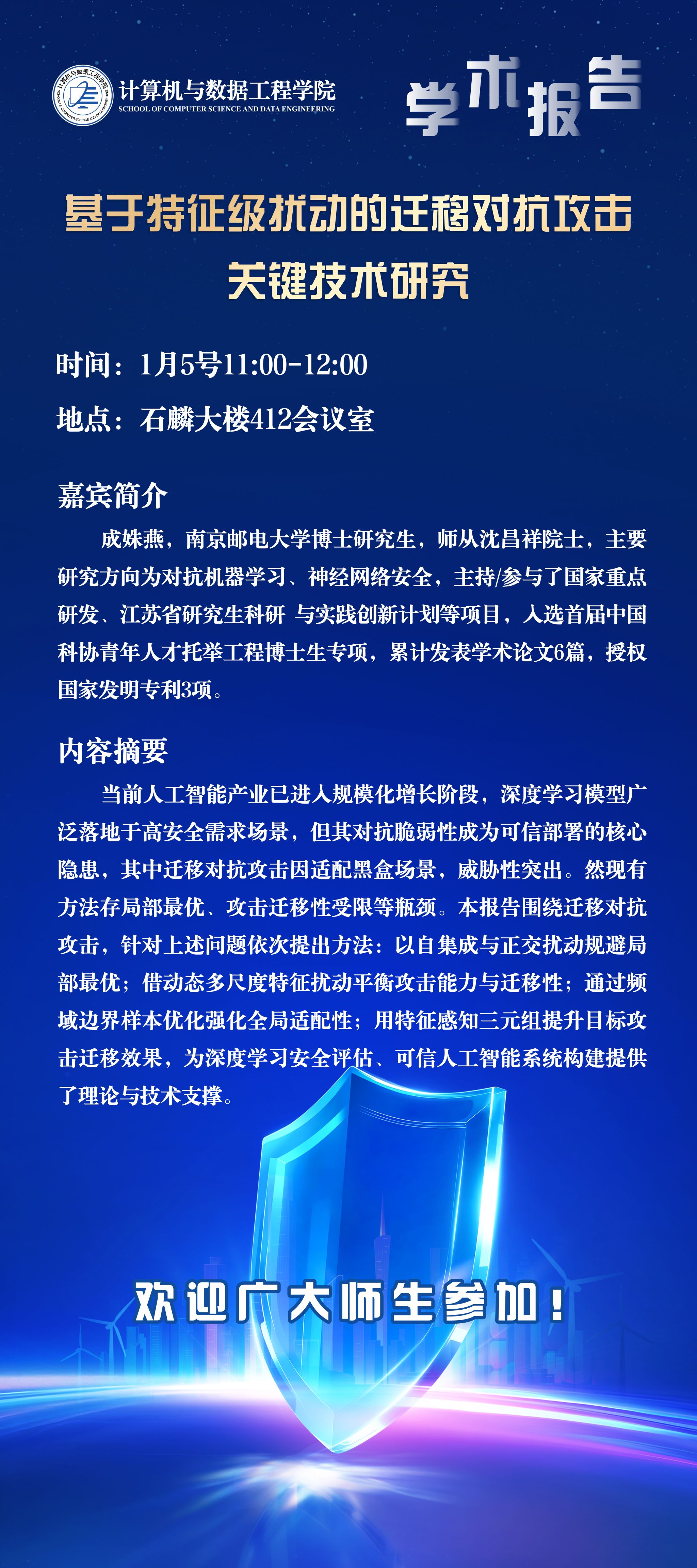 【学术报告】基于特征级扰动的迁移对抗攻击关键技术研究