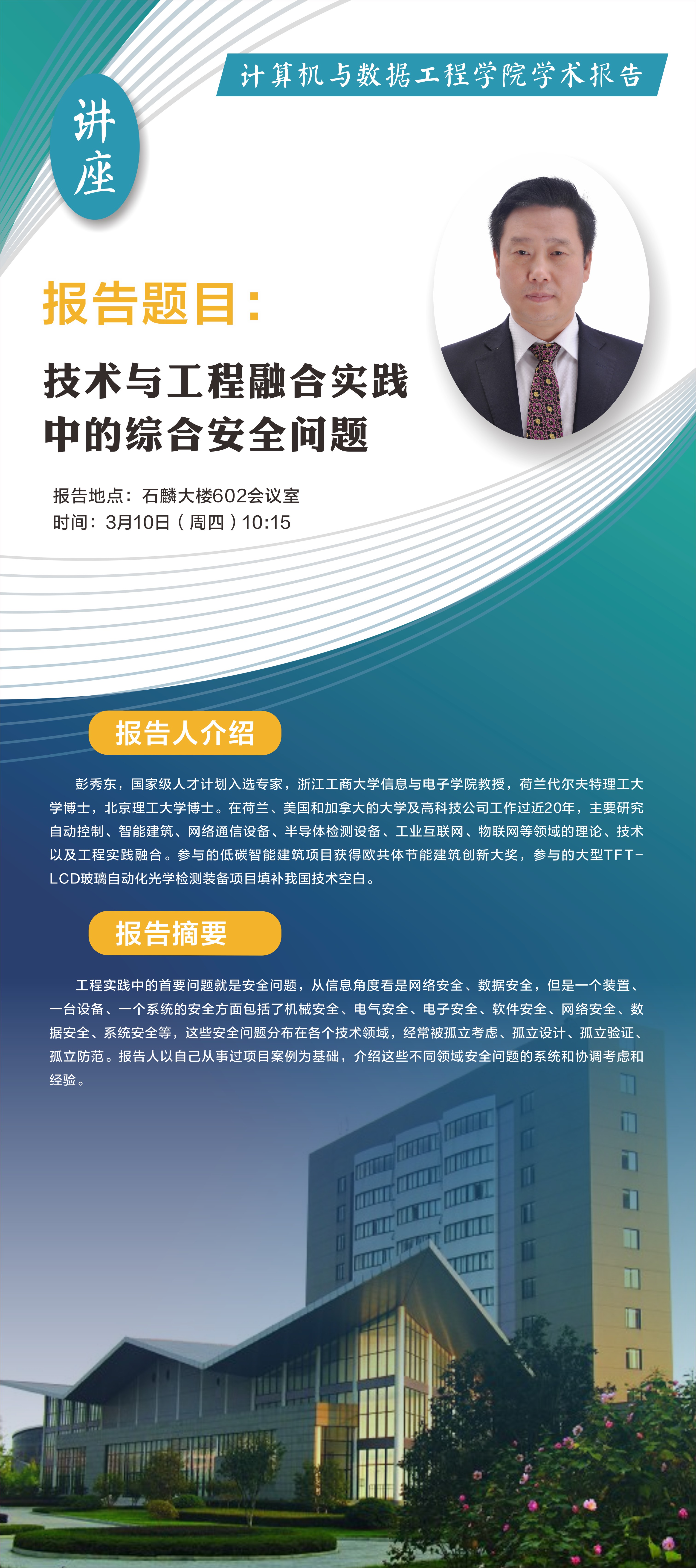 一、报告题目:技术与工程融合实践中的综合安全问题